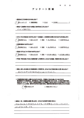 この度、ご依頼者様からは「虹の架け橋さんは業者さんとして本当に信頼ができる企業さんで、依頼当初は不安も少しありましたが、頼んで本当に良かったです。」