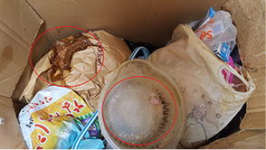 仕分けをする為、中身を確認するとウジ虫が大量に発生しておりました。
