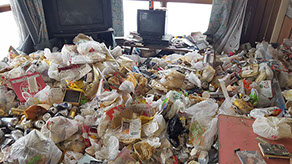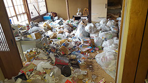 「各市区町村の一般廃棄物収集運搬業」「一般廃棄物処理業」「古物商」「一般貨物自動車運送事業」等の許可なく自社でゴミの収集・運搬から廃棄まで行うことはできないのです。請負う業者がそうした法令・規則を「知らなかった・守らなかった」などということがあれば、ご依頼者様も同様に罰せられてしまうのです。(不法投棄などの場合:懲役5年以下又は1000万円以下の罰金又はその併科)また、品物の買取りも同様に古物商という許可なく勝手な買取りを行うことはできないのです。私たちは法令順守の中で作業を行うことは勿論のこと、プライバシーに配慮した作業も心がけております。ゴミ屋敷の現場はほとんどが長年放置していた物が腐敗していたり、臭いが発生している事が多いです。そうした現場でも私たちは臭いの問題や清掃までの一貫した作業を得意としておりますので問題解決致します。年間を通してハウスクリーニングを行っており、そこから得る清掃経験値や特殊清掃などの臭いの問題が