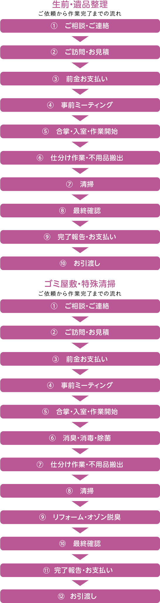 弊社では、ご相談から御見積の訪問、事前ミーティングから完了報告に至るまで、全ての作業を一環して同じ担当者が責任をもってご対応致します。
